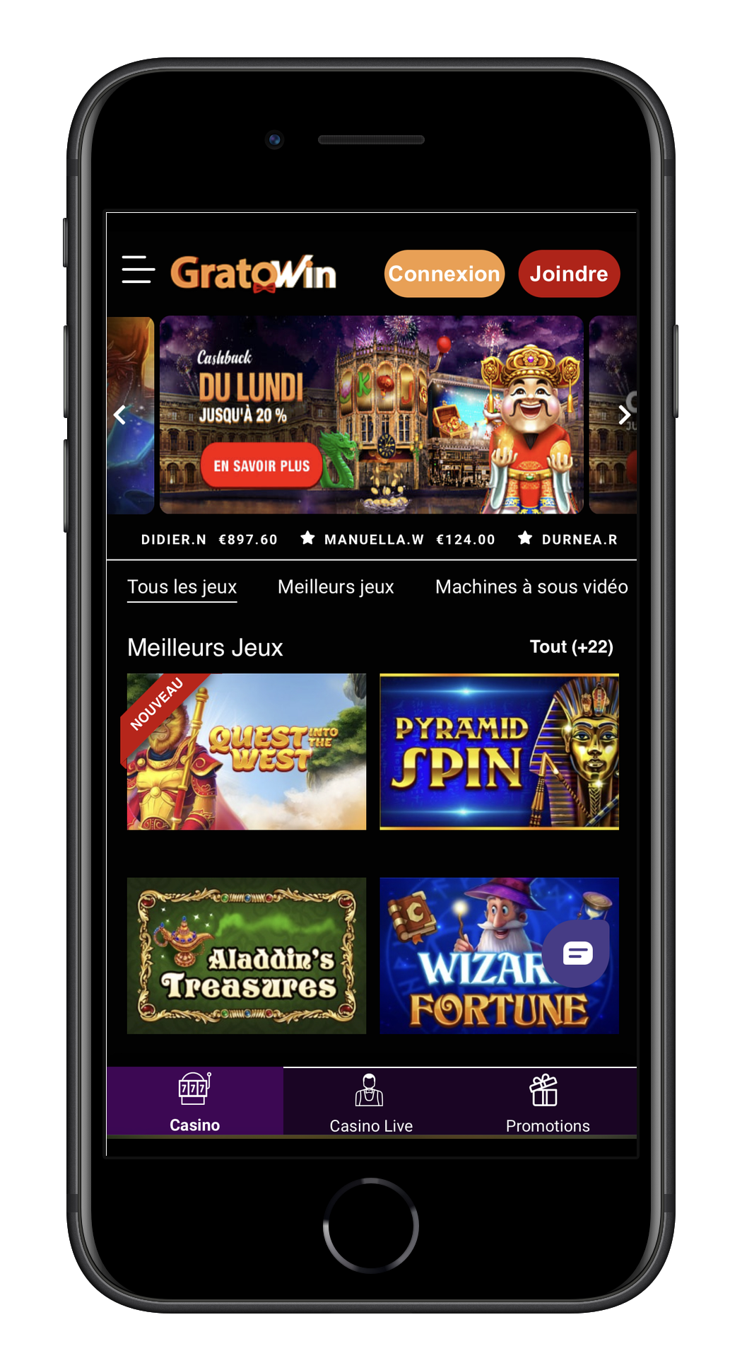 Le Gratowin Casino est fiable aussi bien sur ordinateur que sur mobile. Les concepteurs ont fait de leur mieux pour intégrer tous les éléments importants tels que les boutons d’inscription et de connexion à Gratowin casino .